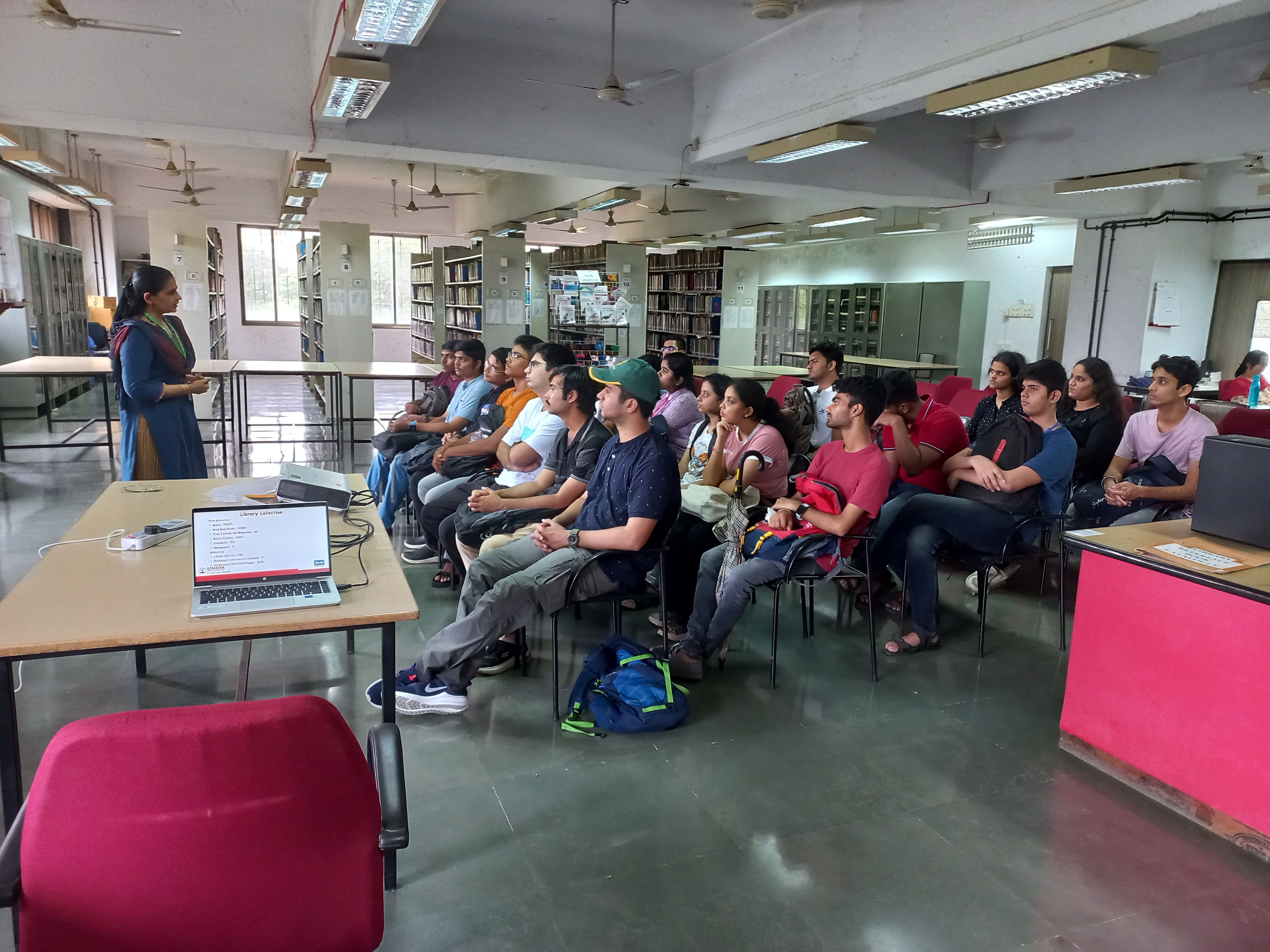 The librarian takes an active part in the orientation programme organized by the college for the benefit of new students in the beginning of academic year. They are taken around the library to familiarize them with various resources and services available for them.